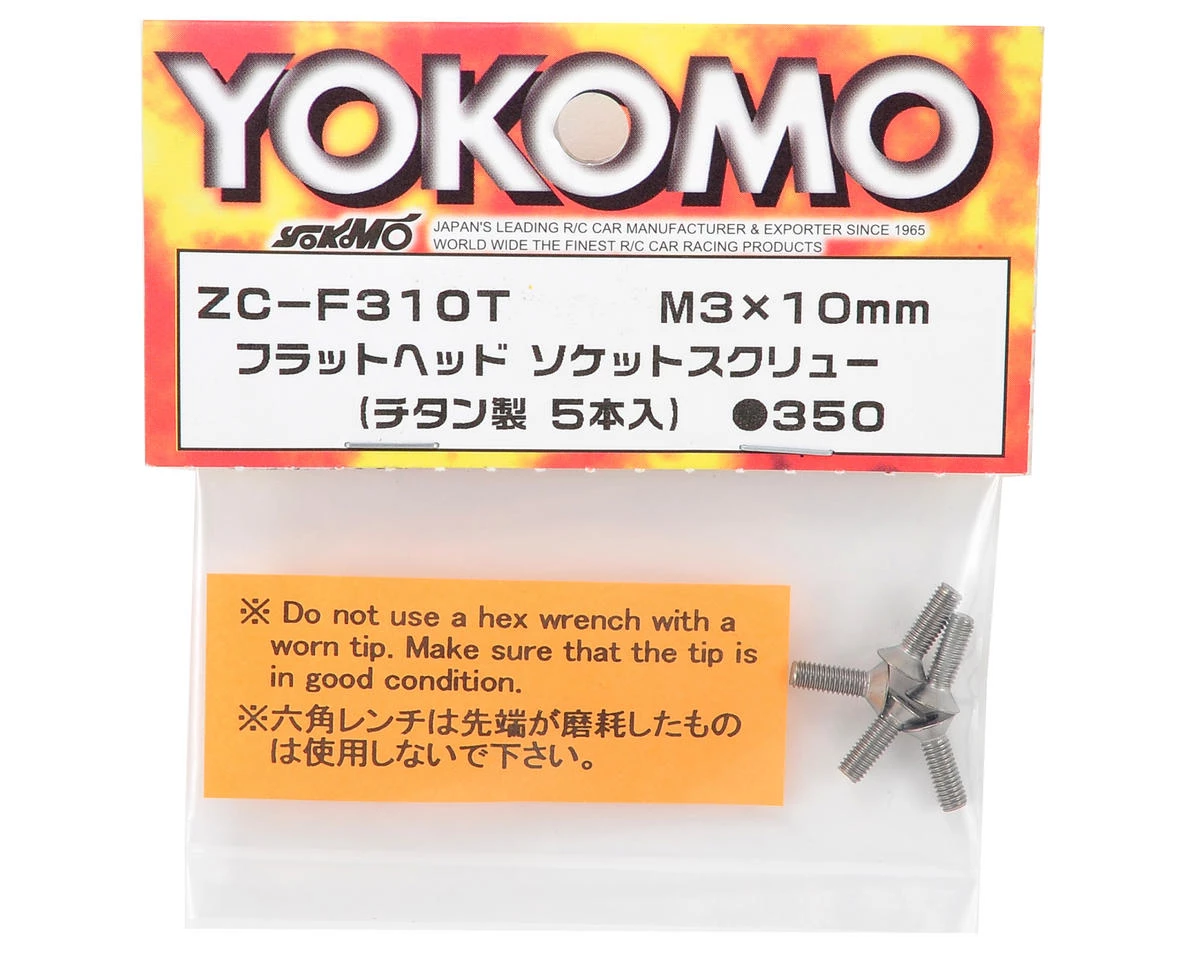 This is a pack of five optional Yokomo 3x10mm Titanium Flat Head Screws, and are intended for use with the Yokomo B-Max2 1/10 scale buggy.Â