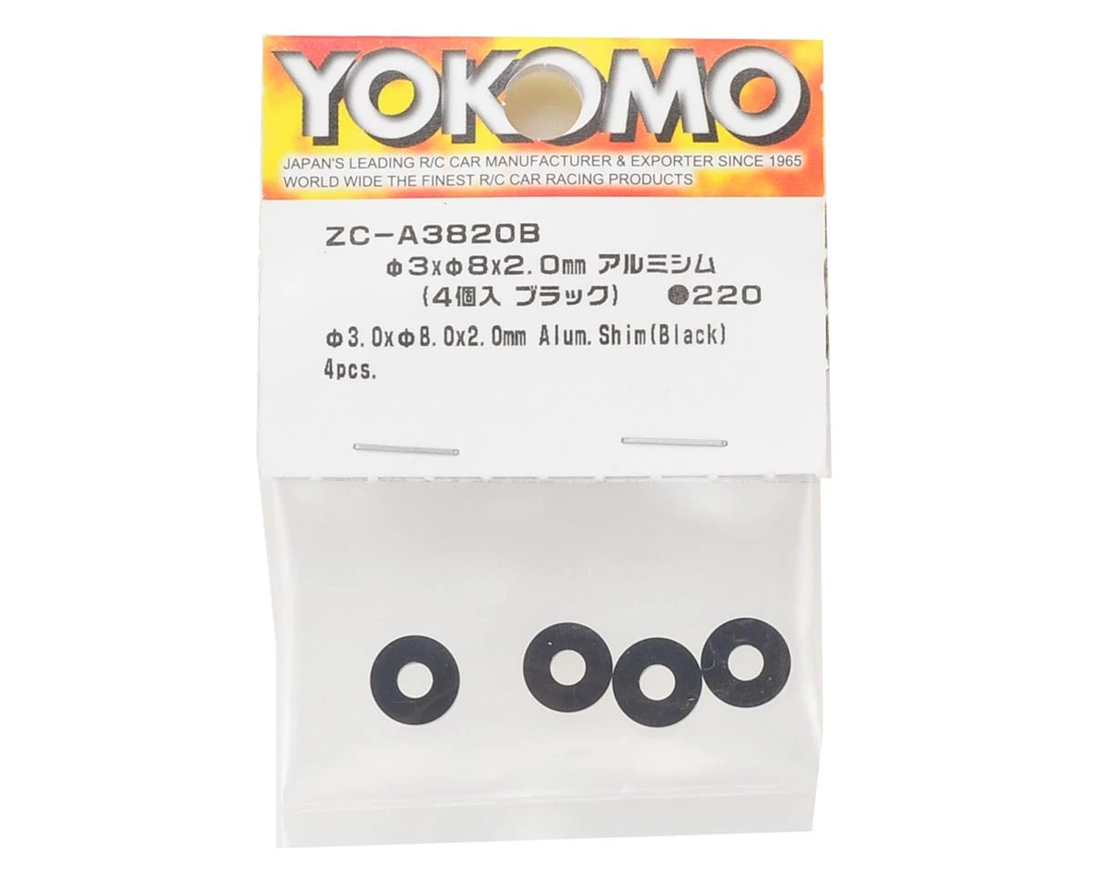 This is a pack of four Yokomo 3x8x2mm Aluminum Shims in Black color. These shims are great for a variety of applications and are a ‘must-have’ for the toolbox.Â