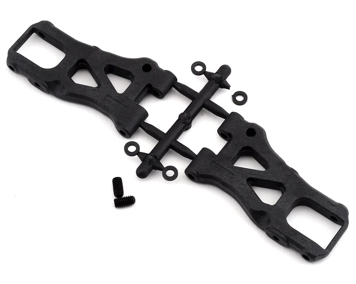 Yokomo BD9 RTC Graphite Rear Suspension Arm. This is a replacement for BD9 models equipped with the Yokomo RTC Rear Toe Control System (YOKB9-RTC). Package includes two rear suspension arms.