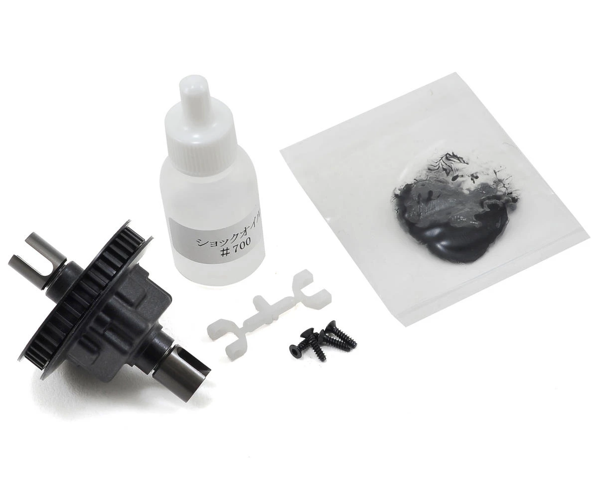 This is a Yokomo BD7 2015 Gear Differential. This complete differential includes all the parts for one diff, as well as driveshaft blades and a small bottle of #700 silicone oil.
