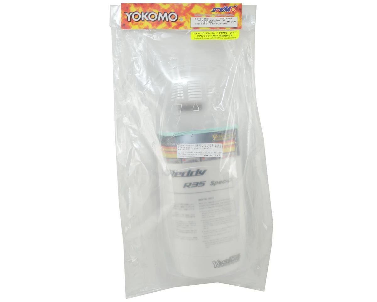 This is the Yokomo GReddy R35 SPEC-D Drift Body Set. This body is made from clear polycarbonate and includes decals and window masks. Trimming and polycarbonate paint required.Â