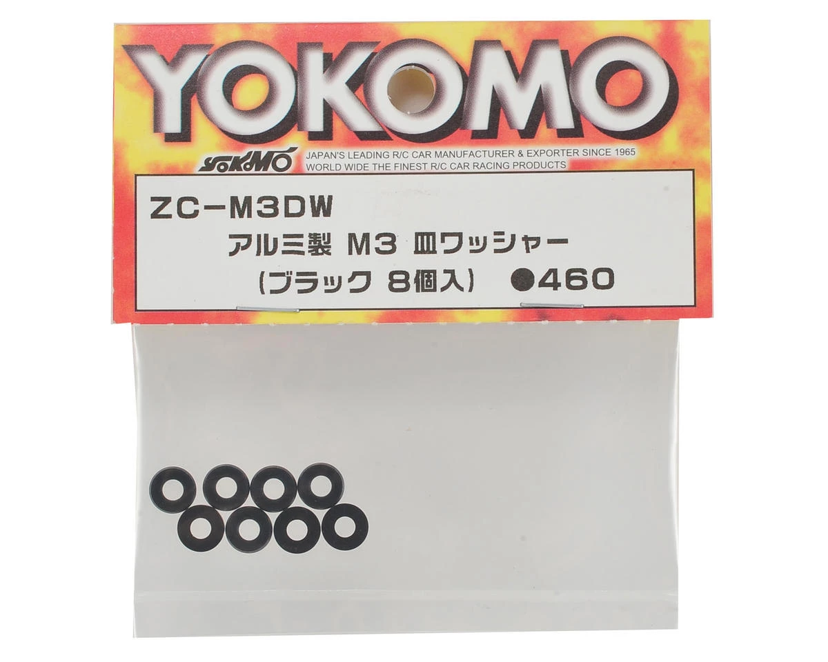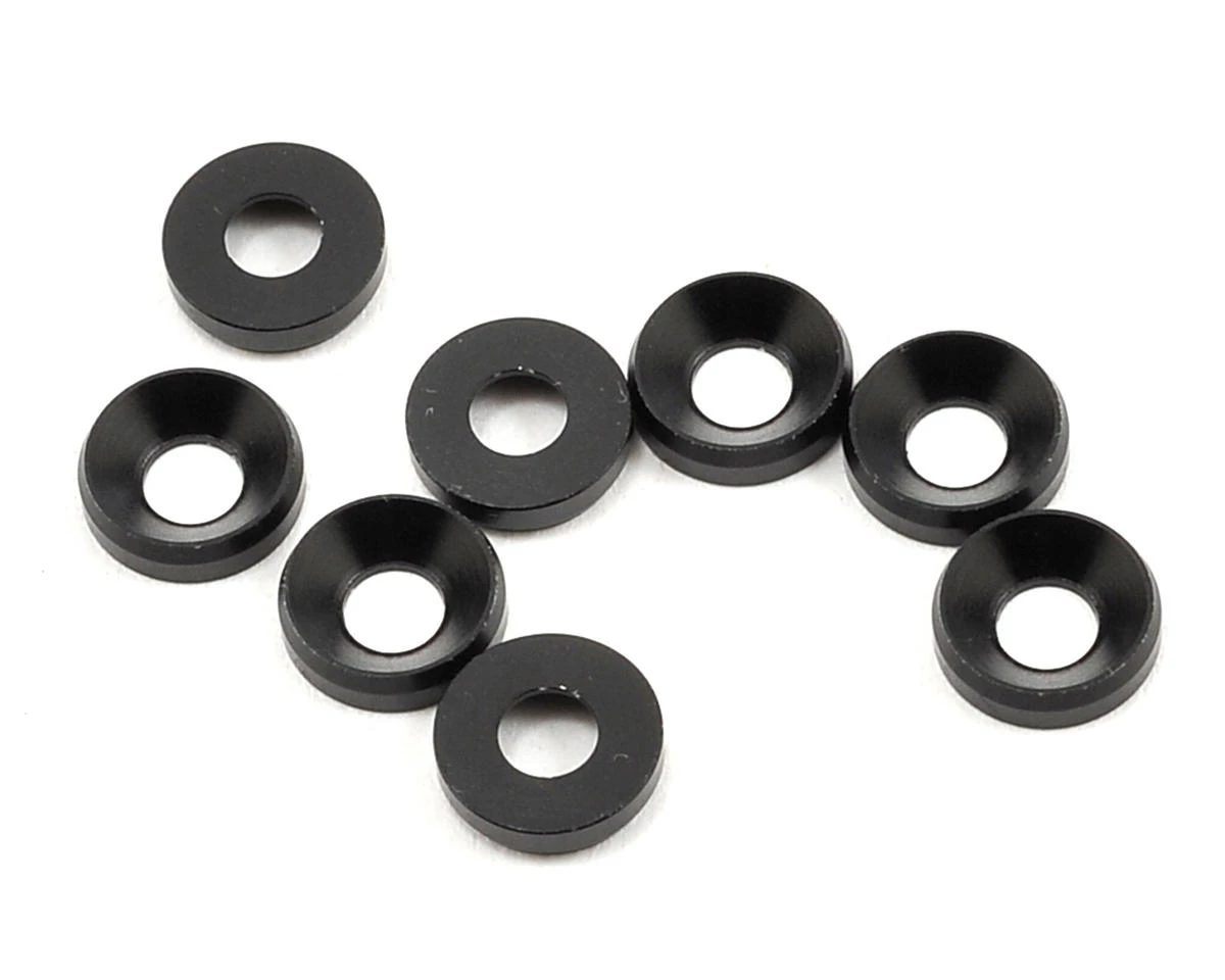 This is a pack of eight Yokomo M3 Aluminum Countersunk Washer in Black color.