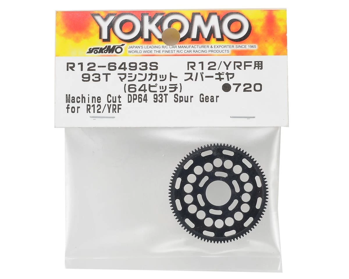 Yokomo R12 64P Machined Spur Gear (93T). Package contains one machine cut spur gear. Intended for use with 1/12 scale Yokomo racing cars.