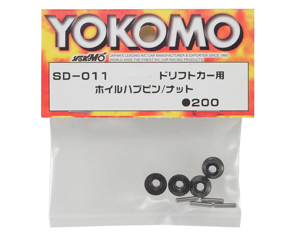 This is a replacement Yokomo Wheel Pin and Nut Set. Package includes four nuts and four axle pins.Â