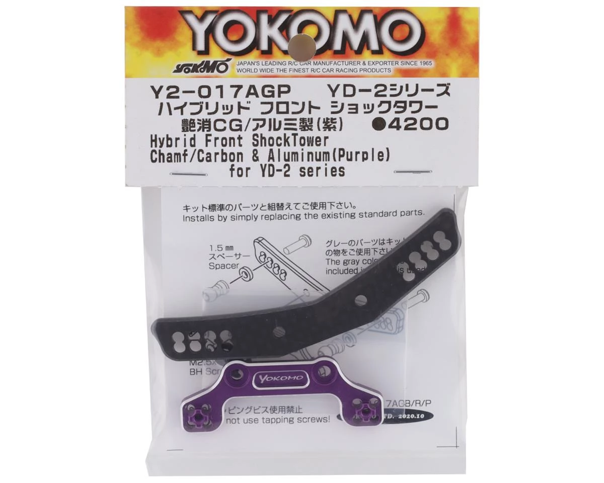 The Yokomo YD-2 Graphite and Aluminum Hybrid Front Shock Tower, is compatible with all YD-2 series models. The shock tower part is made of quality graphite to reduce weight, and the upper arm holder is made of bright purple aluminum to have a hybrid structure with improved precision and rigidity. Aluminum parts are available in multiple anodized colors with bright chamfered edges.Â