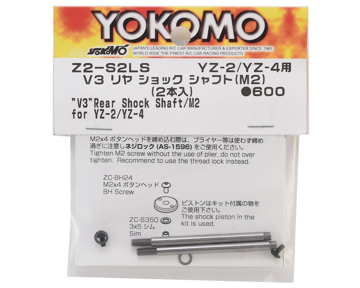 This is a pack of two replacement Yokomo V3 Rear Shock Shafts. These shafts are made from steel and feature the addition of using a screw to secure the piston to the shock shaft.