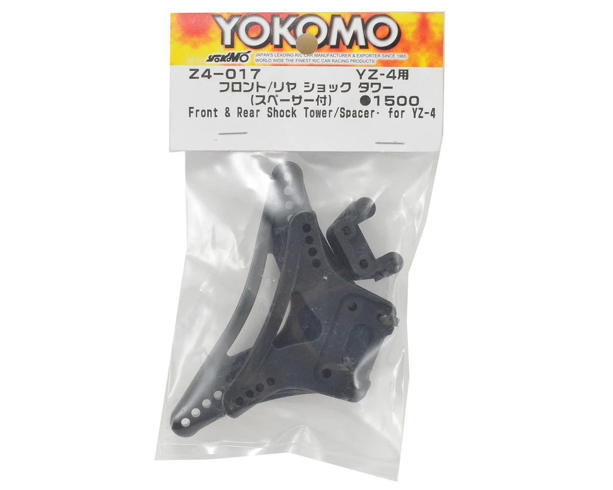 This is a replacement Yokomo YZ-4 Front/Rear Shock Tower Set, including a plastic front and plastic rear shock tower. This package also includes a rear shock tower spacer.